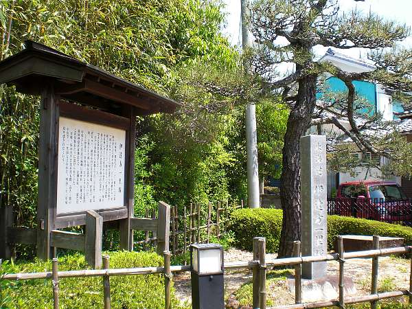 市街地を出て少し開けた所に松並木の残る広い歩道がある。その立派な松の根元に「