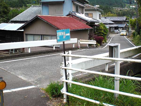 逆川にかかる橋の手前,右側に「