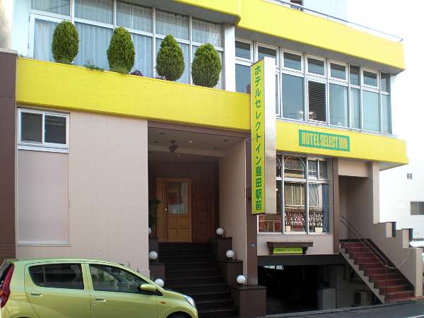 本日の宿「ホテル セレクトイン島田駅前」。シングル5,000円ぽっきりで少し狭いが朝食が大変ご馳走であった(左・右写真=翌日撮ったもの)。