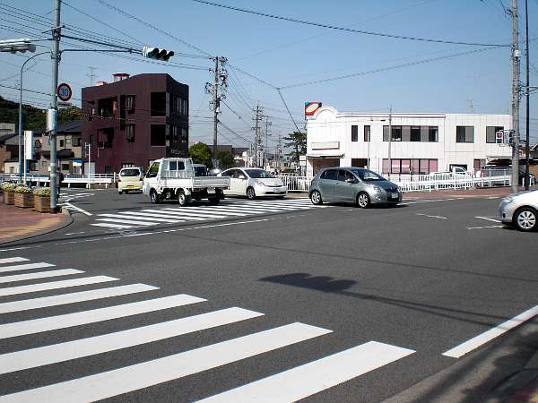すぐに歩道橋があるので国道の左側に渡っておくと良い。
