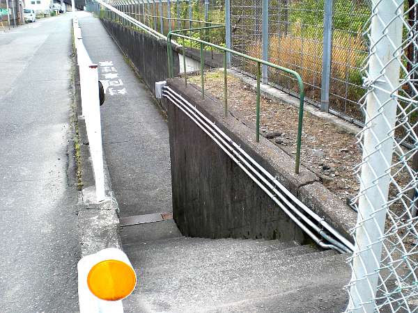 高架からほんの2,30メートル先の新幹線側に階段が有り東海道線の下をくぐって向こう側へでられるようになっている(右・右写真=9:29)。