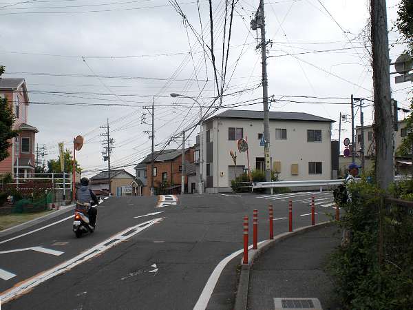 ここからしばらくは住宅街の一本道を真っ直ぐに進む(右・右写真=9:50)。