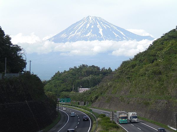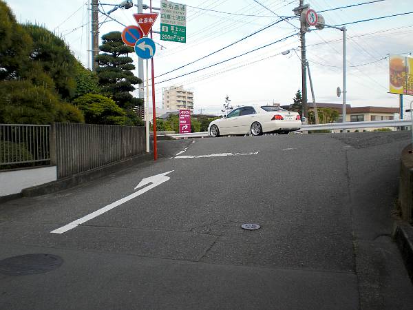 東名高速がトンネルから出て来る辺りに,パーキングがあり,ここからは右手の道を車や単車を避けながらの下り坂となる。(左・右写真=12:09)