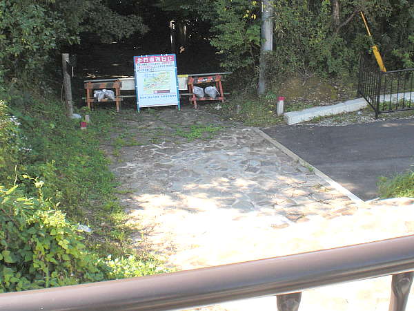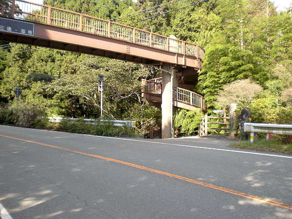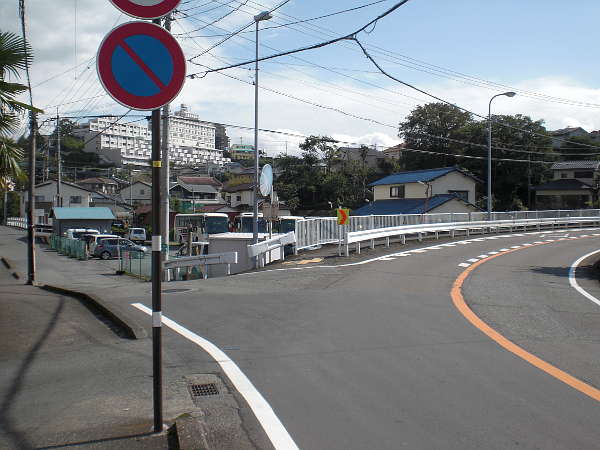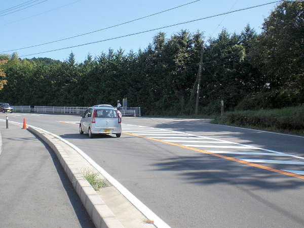 横断は急カーブが有り非常に危険な為、ガードレールに沿って少し上った所に横断歩道がある。