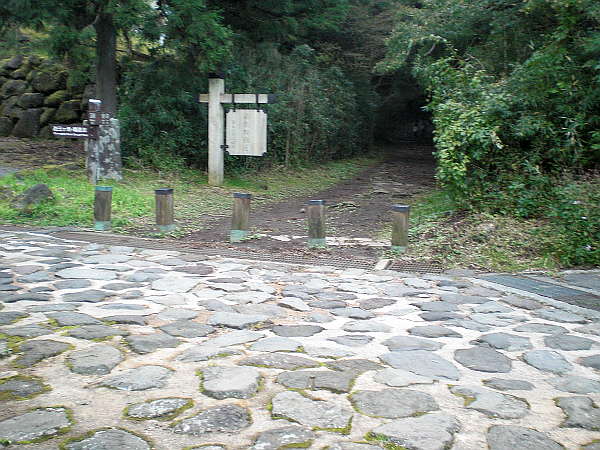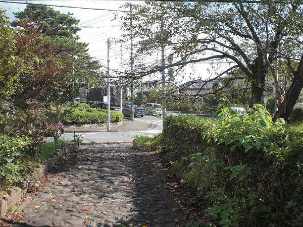 石畳を上りきると旧国道一号線と交叉する。「史跡