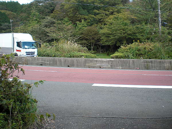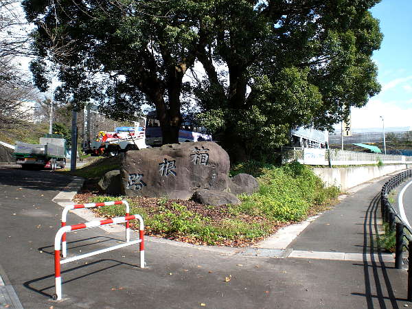 箱根峠方面から箱根新道へ入るランプウェイの下をくぐり、箱根関所方面から来る国道が、箱根新道へのランプウェイと正に分岐する辺りの右側道に[