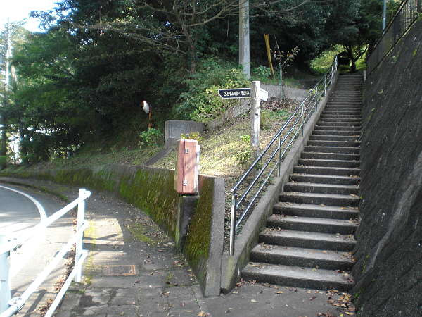 右急カーブを曲がり切ると程なく、左側に階段が見えてくる。(右・右写真=14:39) ここが、旧東海道の入口であるが、しばし階段に腰を下ろし、足を休ませる。