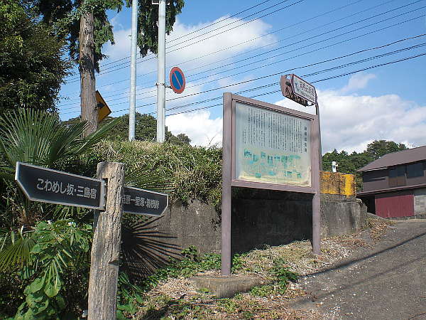 案内板によると、1680年に竹敷きで滑り易かったこの急坂を石畳に改修したとある。(三島市教育委員会)