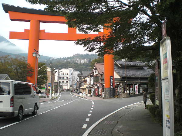 間もなく「箱根神社」の大鳥居が有り、旧東海道(国道一号線)は鳥居前を右へ曲がる。