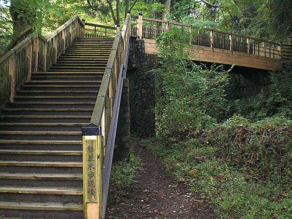 挟はさみ石坂」と名の付いた旧街道入口は、ちょっと進入するのをためらうほど、狭く急な階段になっている。