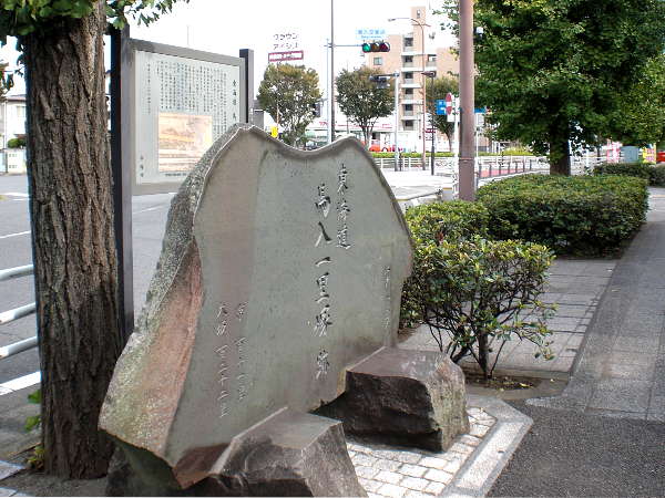 馬入ばにゅうの一里塚跡」石碑が有る。(右・右写真=11:35)