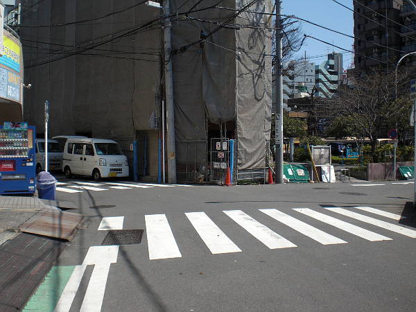 京急本線から離れ、[川崎警察署東側入口]という大きな交差点を過ぎ、二筋目の駐車場角に「