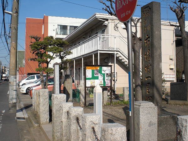 市場の一里塚跡」の碑が建っている(左・左写真=15:11)。