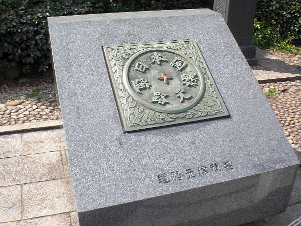 日本国道路元標」(左・左写真=13:30/21328歩)。