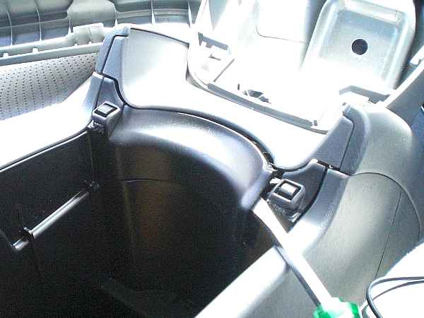 - コンソールボックスASSYリアを両手で挟むようにして、後ろへスライドさせると全体が外れる。