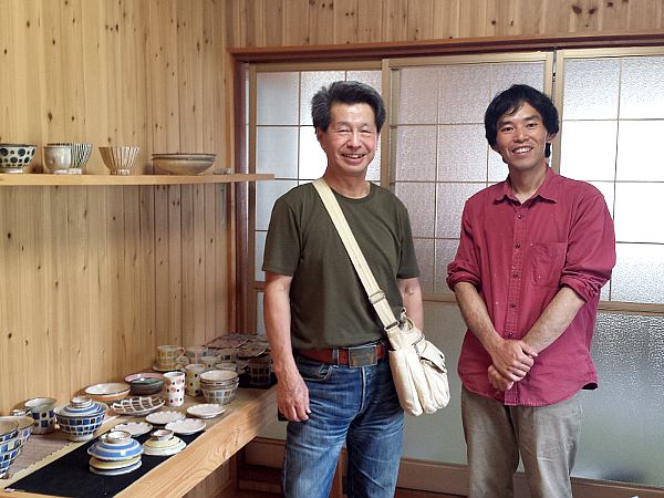 展示会用の仕掛品や窯も見せていただき,作品に対する思いをいろいろ伺った。個展を開こうと決意させてくれたという印判模様との出会いを伺って,その絵柄の器を戴くことにした。