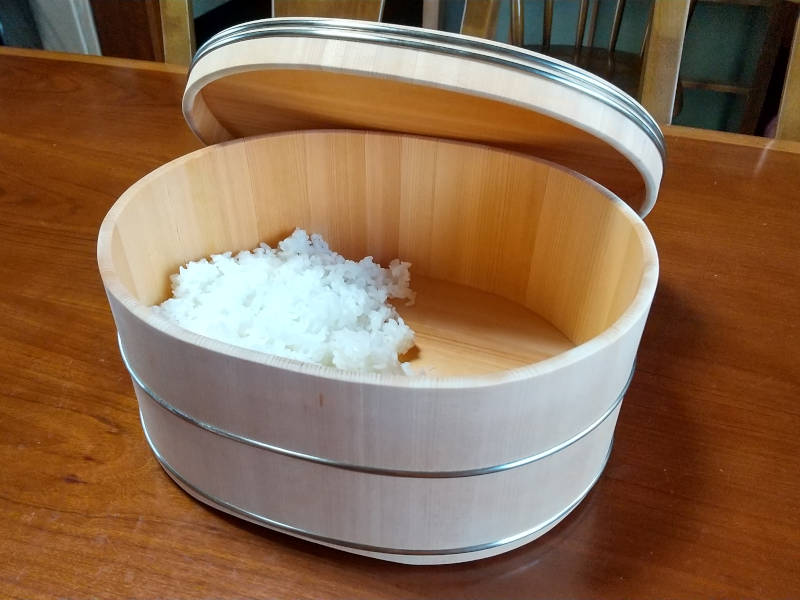 子供の頃、おくどさんにかけた一升釜から炊きたてのご飯を”おひつ”に移して、大湯気を立ててから布巾をかけ蓋をして、一日かすかな木の移り香と、わずかに自然保温されたご飯を食べた思い出が、何十年も頭の片隅に残り香のように有った。