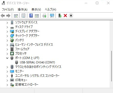 デバイスマネージャーは[Win]+[x]→[m]で表示できます。ご自身のCOMポートを確認してください。