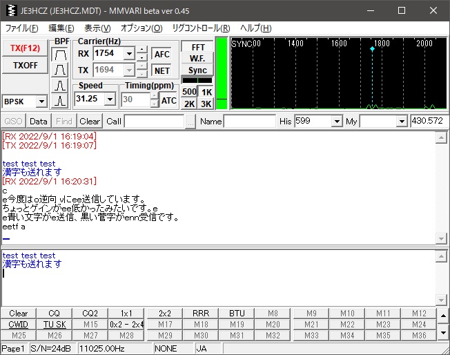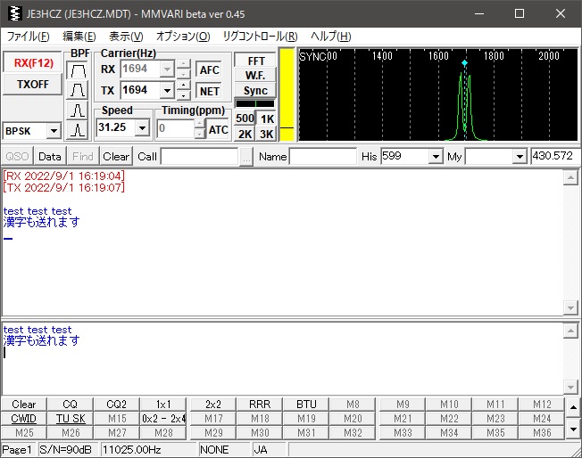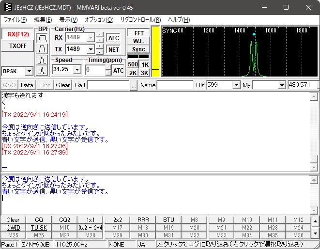 それぞれ、430のSSBモード帯で同一周波数にセットして実験開始です。