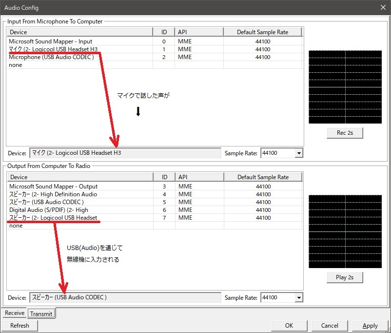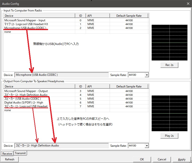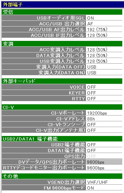 ACC/USB AF出力レベル : 192(75%) は、後述するPCのサウンドカードに於けるレベル調整と合わせて実際の音調で調整してください。