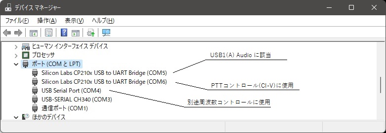 COM(B)つまり無線機側のUSB2(B)は、