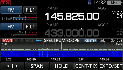 IC-9700では周波数コントロールに衛星通信モードを利用しますが、表示できる周波数はバンドが異なっていなければなりません。