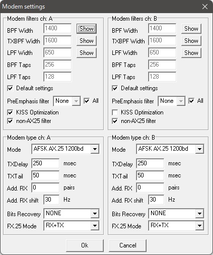 標準のままで良いと思いますが FX 25 Mode に関しては [RX+TX] が選択されている必要があります。
