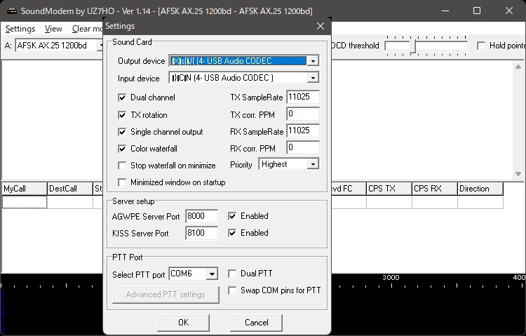 - SoundModemを立ち上げ [Settins] → [Devices] を選択