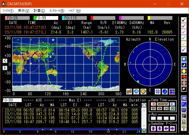 2023.11.9 07:50のパスで高度200kmを切り、最終コマンドが送信されました。(詳しくは下記をご覧ください。)