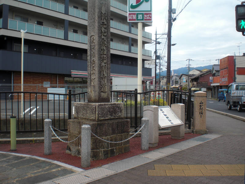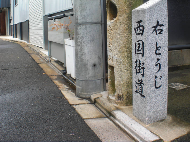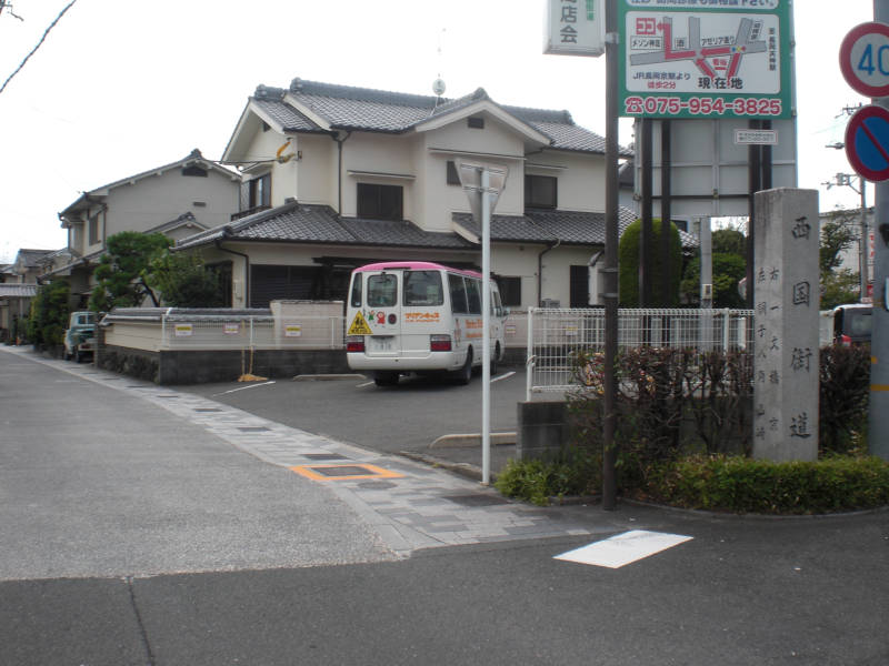 九条御前]の交差点から西国街道は南西の方角に向く。東西南北の枡目になっている京都からするといかにも旧街道らしい。