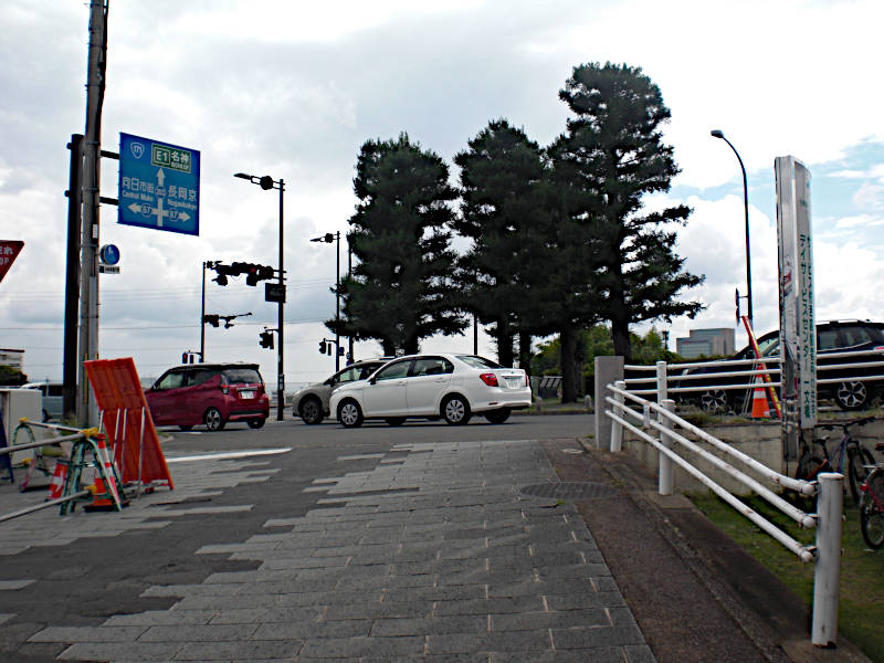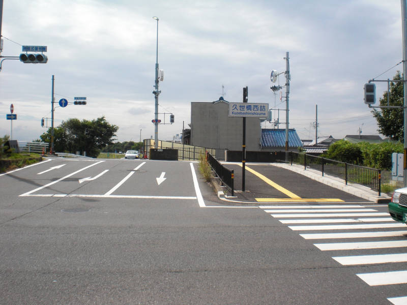 久世橋西詰]の交差点を4車線分横断して向こう突き当たりの細い歩道を右へ下りる。