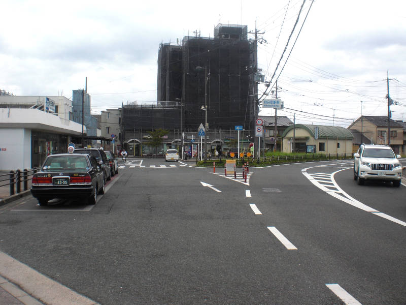 JR京都線 向日町駅の前で斜め右方向(南西)に進路を取る。