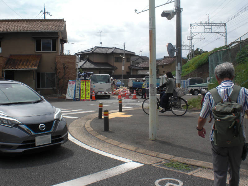 再び物集女街道に合流、直ぐに阪急京都線のガードをくぐる。出たところの初めての横断歩道を渡って物集女街道より右手の(今日は工事中だったが通してくれた)へ進む。