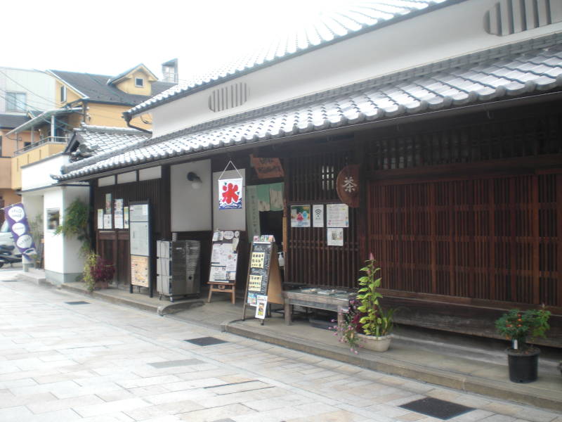 神足ふれあい町屋として喫茶も出来る、当時をしのばせる旧家。それにしてもこの辺りは西国街道全面石畳はすごい。