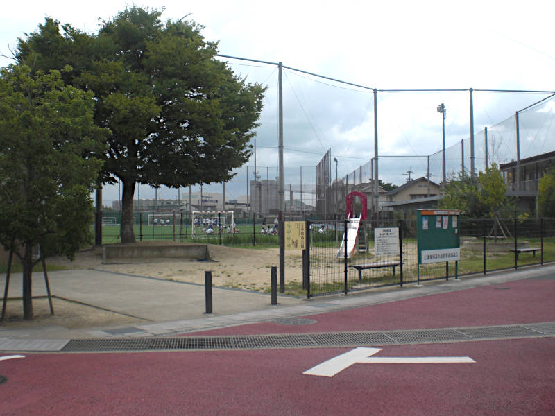 又一里塚かと思わせる樹木の有る公園に行き当たる。「立命館西公園」と案内板が有る。