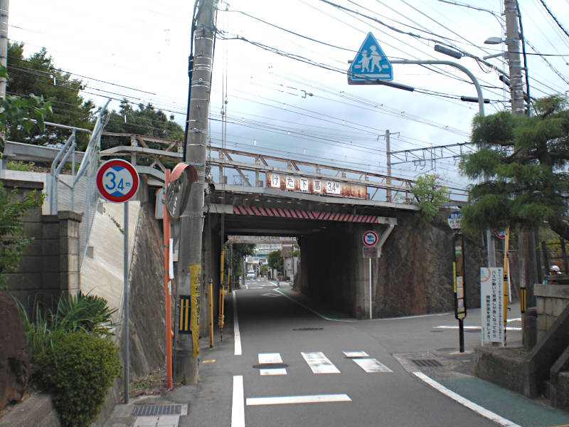 東海道新幹線の高架を過ぎるて暫くすると、JR京都線の地下トンネルに突き当たる。
