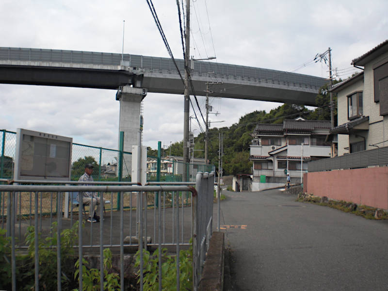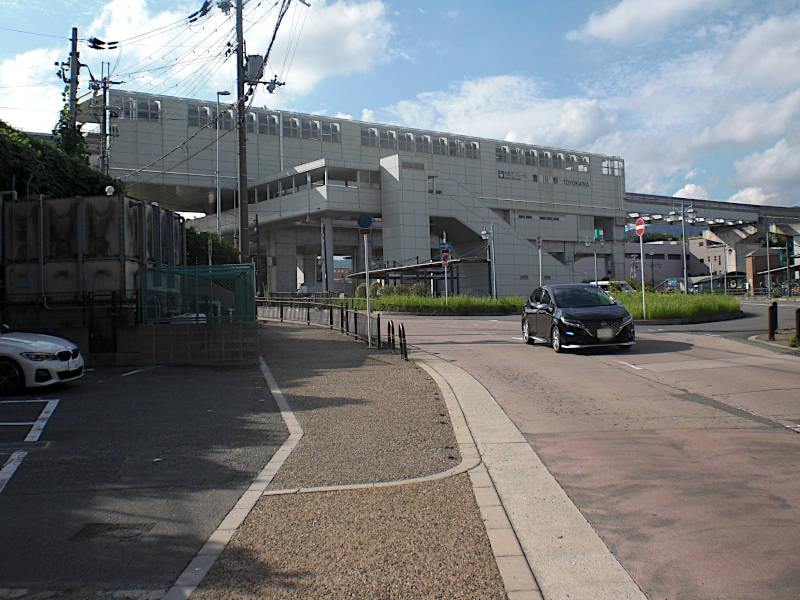 突然場違いの建造物のような大阪モノレール彩都線豊川駅が見えてくる。