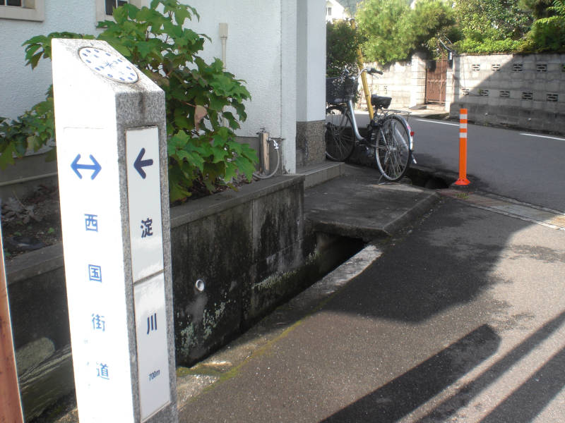 従って、この標識のように「左淀川」とか「左大坂」などの道標が頻繁に出現する。(8:40)