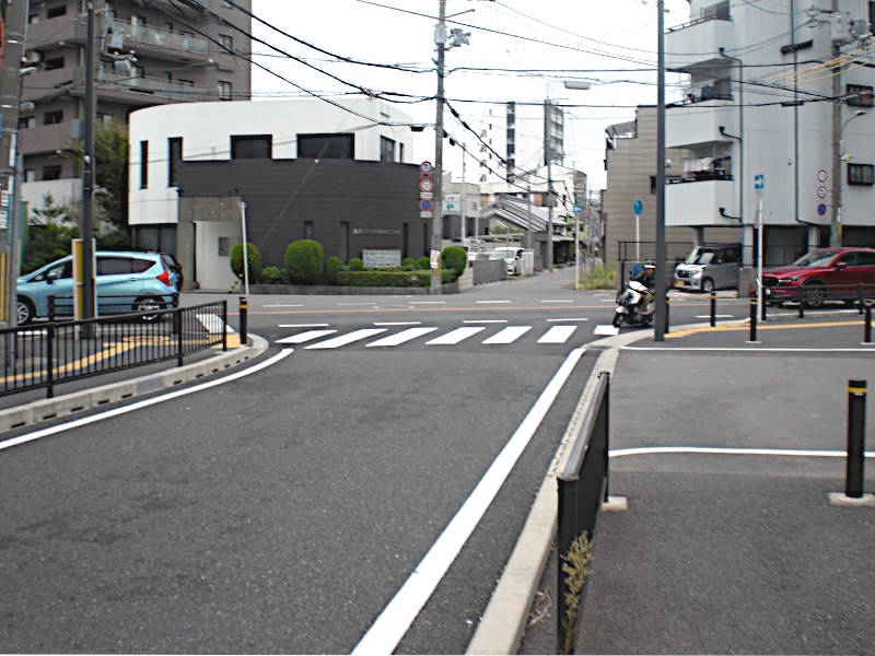 その直ぐ先に五叉路(小道を入れると六叉路)が在るが、ここは左側しか歩道が無い。その先のもう一つ越えなければならない車道には何も無い。(10:50)