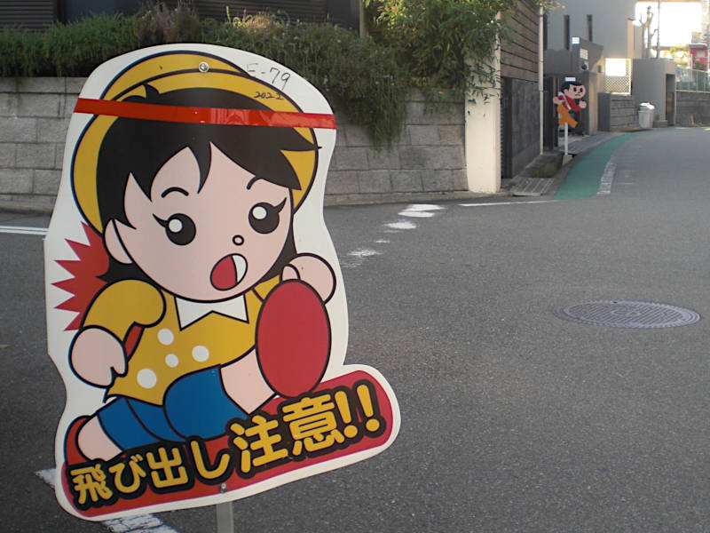 滋賀県人としてはめっちゃ気になる飛び出しガール。10m向こうには滋賀発祥オリジナルの「飛び出し坊や」。