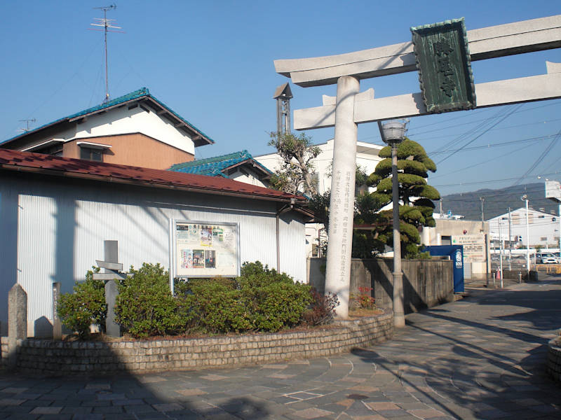 交差点で道を見ると大きな鳥井。しかもそこには「