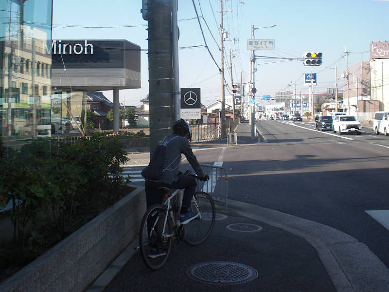 さらに300m程先に[萱野4丁目]と言う信号が有るのでここを左折する。(9:02)