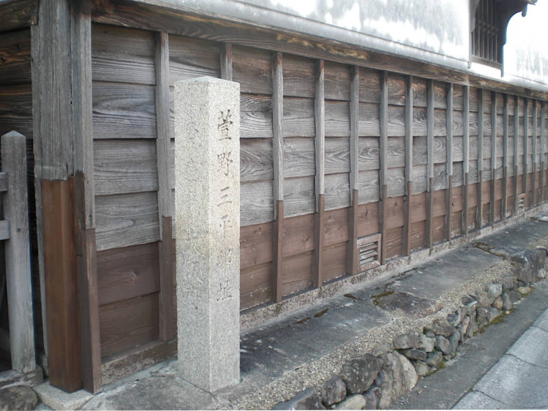 萱野三平邸址」。父の主君である美濃の旗本大嶋出羽守の推挙で