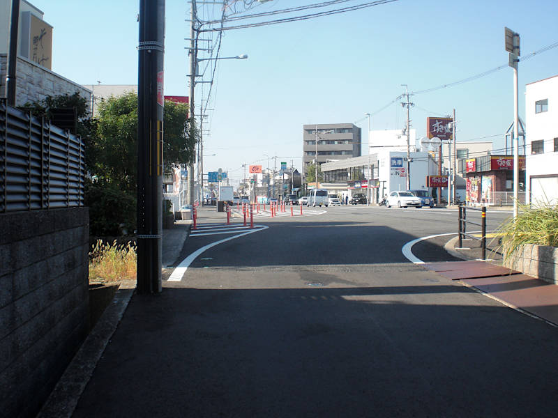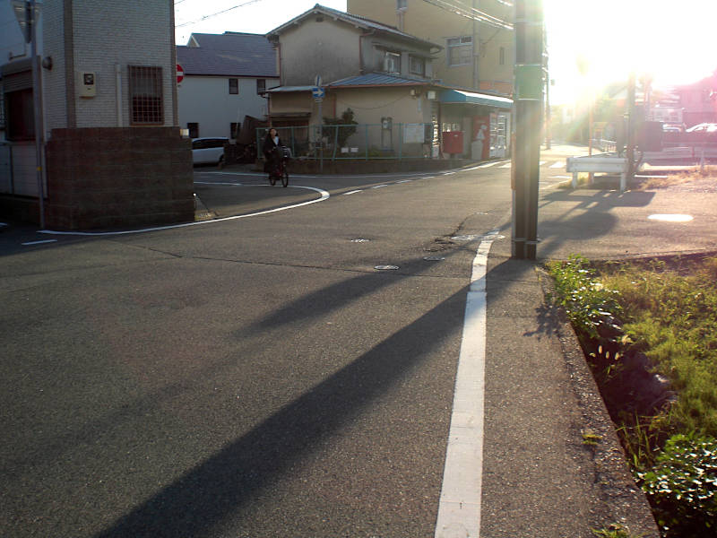 暫く住宅街を行くと「中津浜線」という車道の三叉路を斜めに突っ切って居り、変則の五叉路を形成している。(15:30)