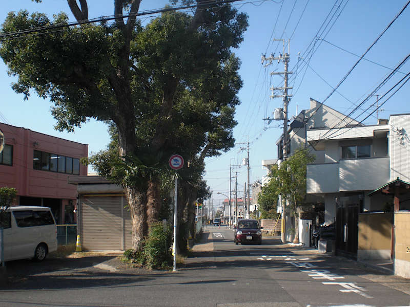 街道の名残を思わせる大木。そう言えば今日のコースには一里塚跡が見当たらない。都市部を越えてもっと西へ行けば有るのだろうか。(9:44)