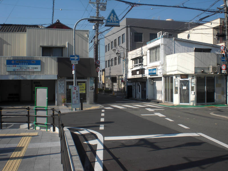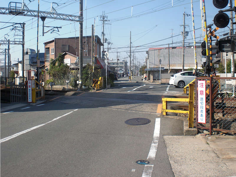阪急箕面線の踏切を渡る。阪急は左方向で大きく右カーブをして、この先暫く西国街道に沿うように走っている。