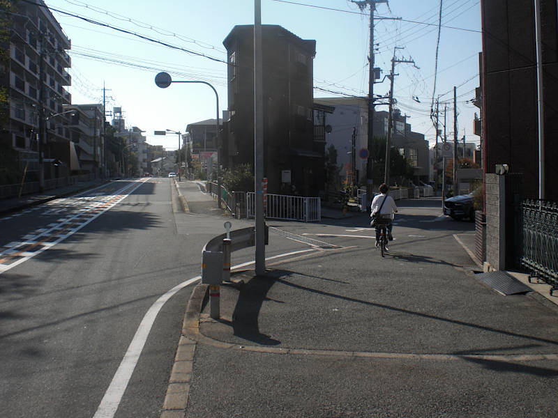 大小いくつかの交差点を真っ直ぐ横断して来ると、国道171号線の[西宿2丁目]と言う交差点に合流する。(8:53)
