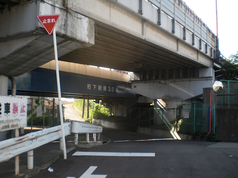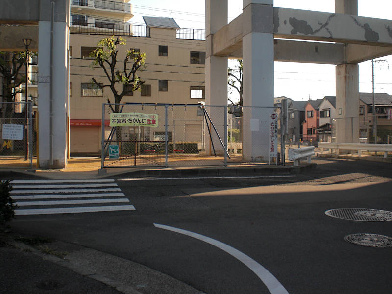 山陽新幹線の高架下に突き当たります。車道ではなく横断歩道が有るので公園(新幹線高架下2号児童遊園)を抜けて向こう側に出る。(15:19)