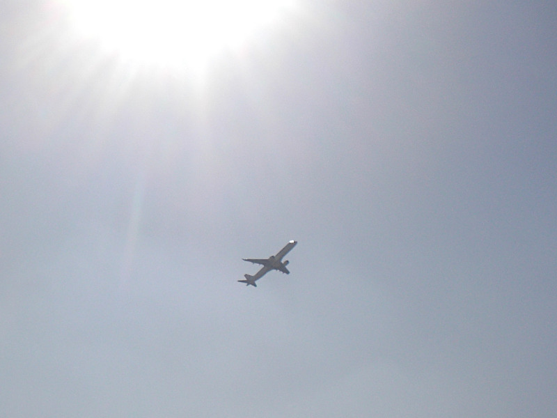ちょうど離陸してきた旅客機。そう言えば「りょかっき」と文字入力した自分に気が付いた。(ATOKは旅客機と変換してくれたが^^;)