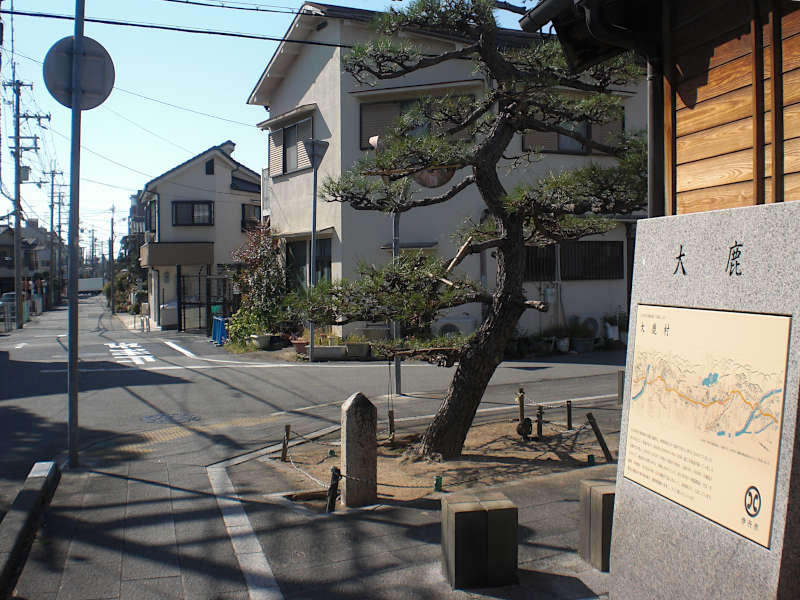 大鹿村」の石碑。東西2つに分かれた大鹿村が有り中程に